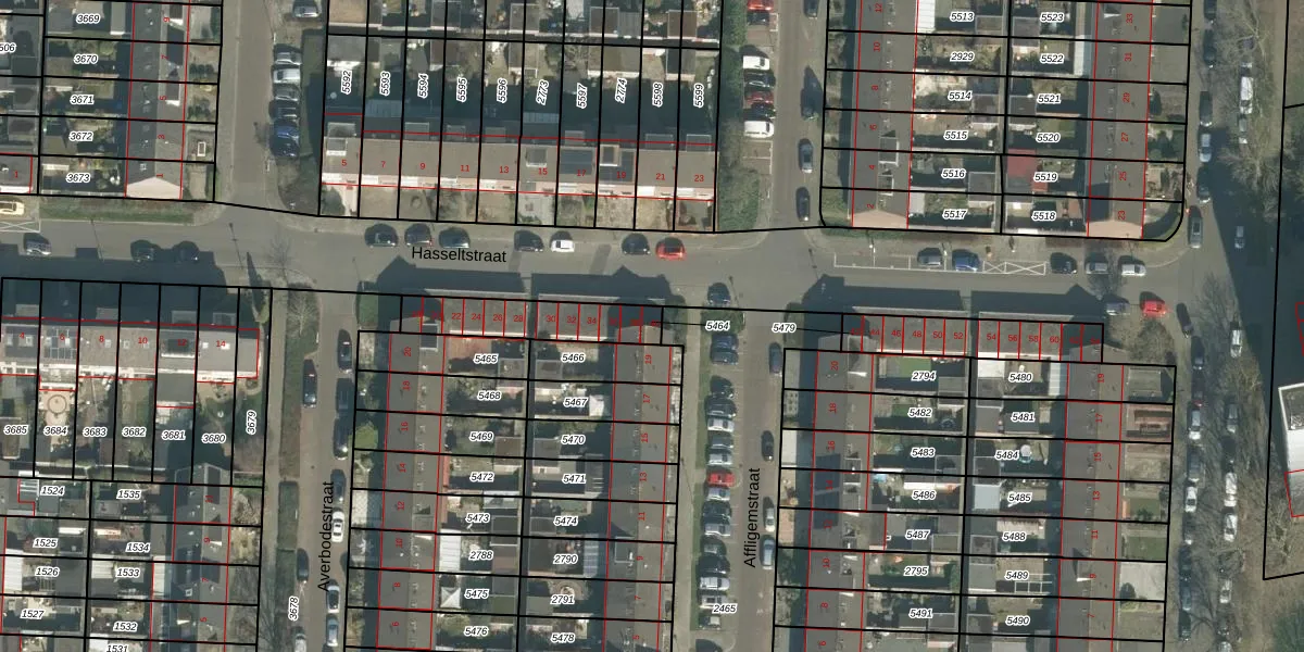 Hasseltstraat 40 is gelegen op kadastraal perceel BDA00G5464. Deze kadastrale aanduiding is uniek en wordt gebruikt door het Kadaster om eigendomsrechten en andere zakelijke rechten vast te leggen. Het perceel maakt onderdeel uit van de kadastrale gemeente Breda.