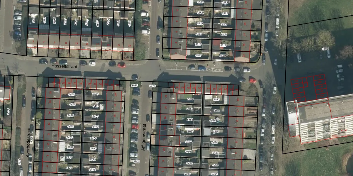 Hasseltstraat 44 is gelegen op kadastraal perceel BDA00G5479. Deze kadastrale aanduiding is uniek en wordt gebruikt door het Kadaster om eigendomsrechten en andere zakelijke rechten vast te leggen. Het perceel maakt onderdeel uit van de kadastrale gemeente Breda.