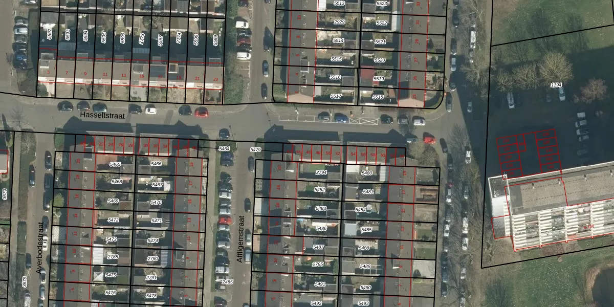 Hasseltstraat 46 is gelegen op kadastraal perceel BDA00G5479. Deze kadastrale aanduiding is uniek en wordt gebruikt door het Kadaster om eigendomsrechten en andere zakelijke rechten vast te leggen. Het perceel maakt onderdeel uit van de kadastrale gemeente Breda.