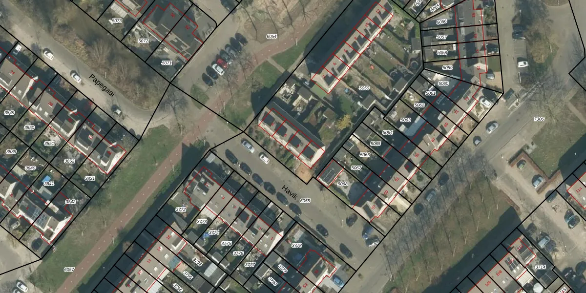Het perceel waarop Havik 4 staat heeft een oppervlakte van 2022 m². Dit is een zeer groot perceel. De perceeloppervlakte wordt geregistreerd door het Kadaster. Gedetailleerde informatie over de maten van dit perceel kunt u vinden in het rapport Kadastrale kaart met maatvoering van Havik 4.