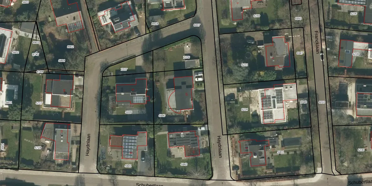 Haydnlaan 13 is gelegen op kadastraal perceel BDA00E5940. Deze kadastrale aanduiding is uniek en wordt gebruikt door het Kadaster om eigendomsrechten en andere zakelijke rechten vast te leggen. Het perceel maakt onderdeel uit van de kadastrale gemeente Breda.