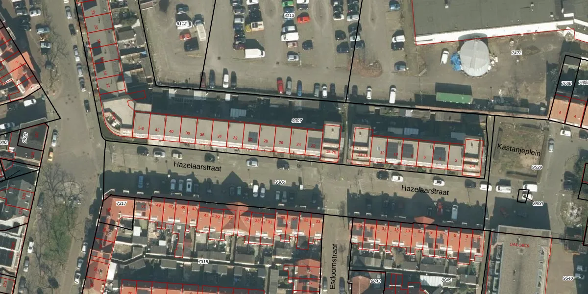 Hazelaarstraat 24 is gelegen op kadastraal perceel BDA00A9307. Deze kadastrale aanduiding is uniek en wordt gebruikt door het Kadaster om eigendomsrechten en andere zakelijke rechten vast te leggen. Het perceel maakt onderdeel uit van de kadastrale gemeente Breda.