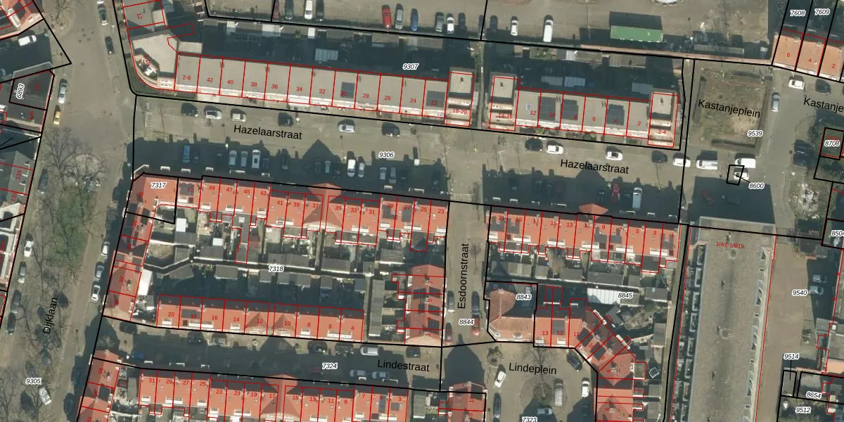 Het perceel waarop Hazelaarstraat 25 staat heeft een oppervlakte van 2640 m². Dit is een zeer groot perceel. De perceeloppervlakte wordt geregistreerd door het Kadaster. Gedetailleerde informatie over de maten van dit perceel kunt u vinden in het rapport Kadastrale kaart met maatvoering van Hazelaarstraat 25.