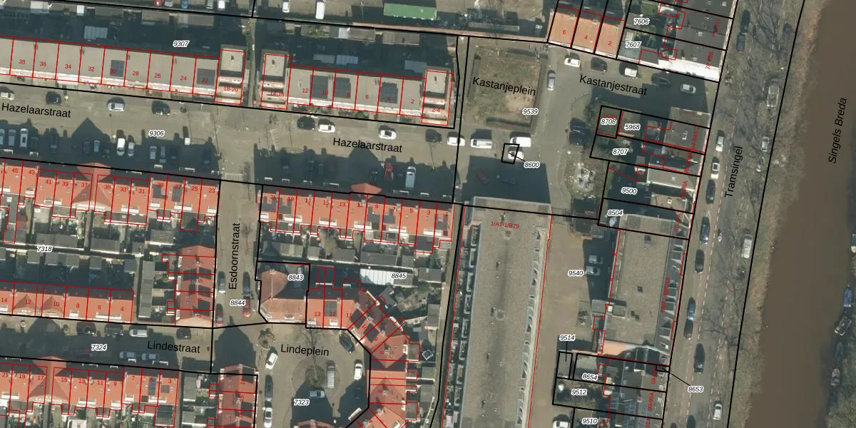 Hazelaarstraat 3 is gelegen op kadastraal perceel BDA00A8845. Deze kadastrale aanduiding is uniek en wordt gebruikt door het Kadaster om eigendomsrechten en andere zakelijke rechten vast te leggen. Het perceel maakt onderdeel uit van de kadastrale gemeente Breda.