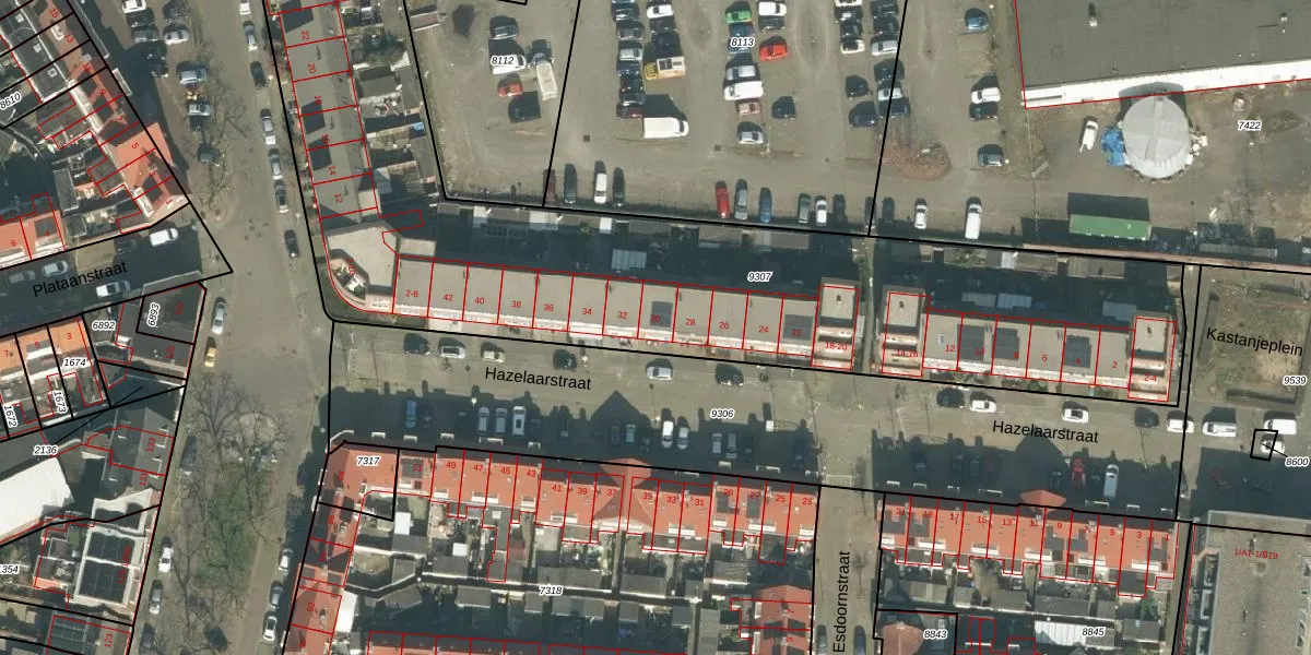 Hazelaarstraat 30 is gelegen op kadastraal perceel BDA00A9307. Deze kadastrale aanduiding is uniek en wordt gebruikt door het Kadaster om eigendomsrechten en andere zakelijke rechten vast te leggen. Het perceel maakt onderdeel uit van de kadastrale gemeente Breda.