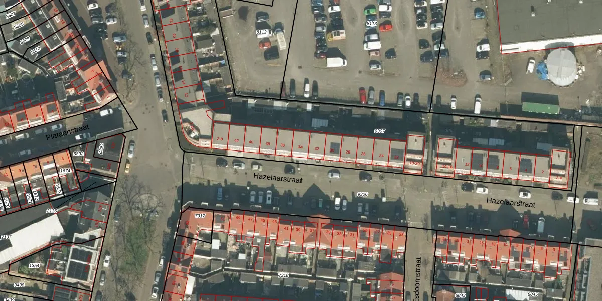 Hazelaarstraat 34 is gelegen op kadastraal perceel BDA00A9307. Deze kadastrale aanduiding is uniek en wordt gebruikt door het Kadaster om eigendomsrechten en andere zakelijke rechten vast te leggen. Het perceel maakt onderdeel uit van de kadastrale gemeente Breda.