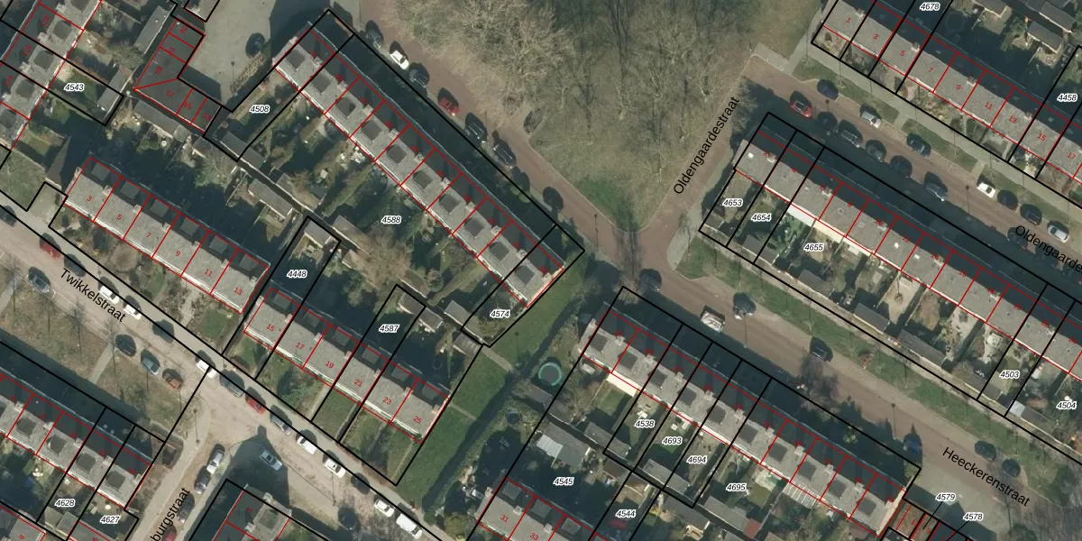 Gebruik de zoekbalk of klik op een perceel voor informatie over de adressen binnen dit perceel.