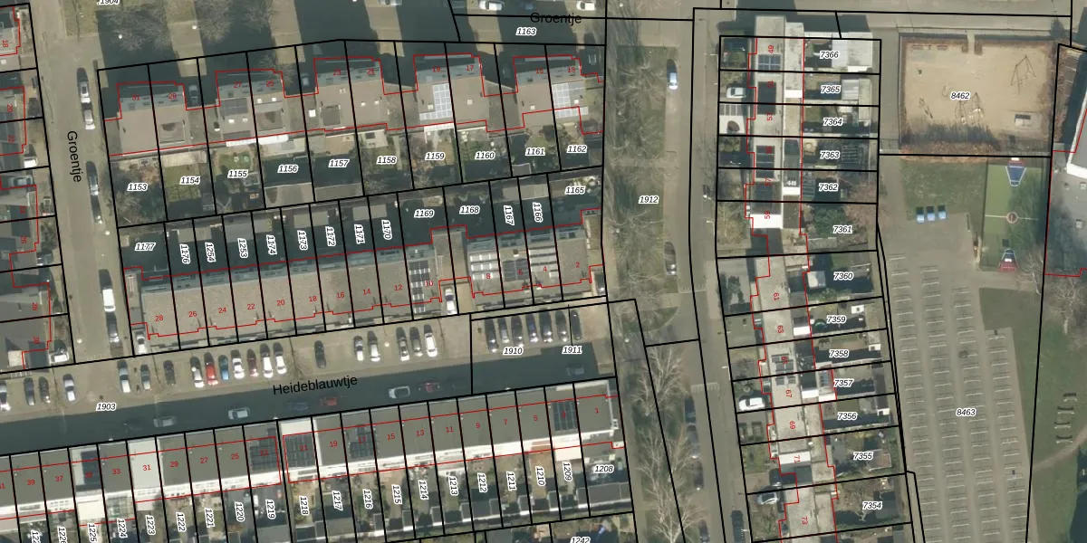 Gebruik de zoekbalk of klik op een perceel voor informatie over de adressen binnen dit perceel.
