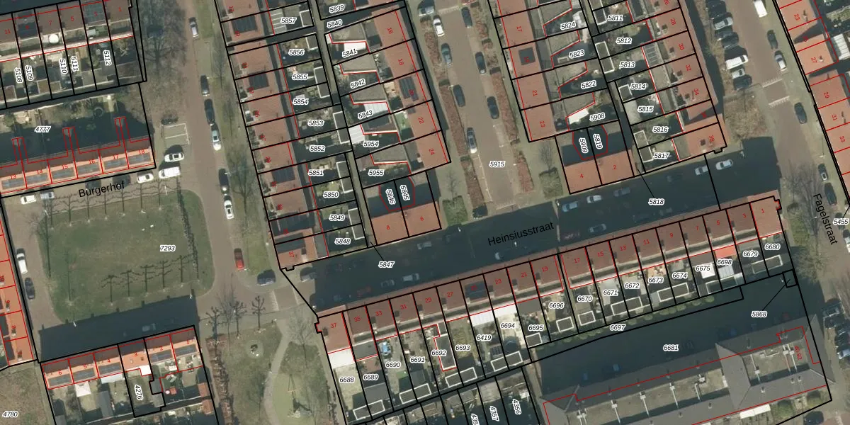 Heinsiusstraat 6 is gelegen op kadastraal perceel PCH00I5845. Deze kadastrale aanduiding is uniek en wordt gebruikt door het Kadaster om eigendomsrechten en andere zakelijke rechten vast te leggen. Het perceel maakt onderdeel uit van de kadastrale gemeente Princenhage.
