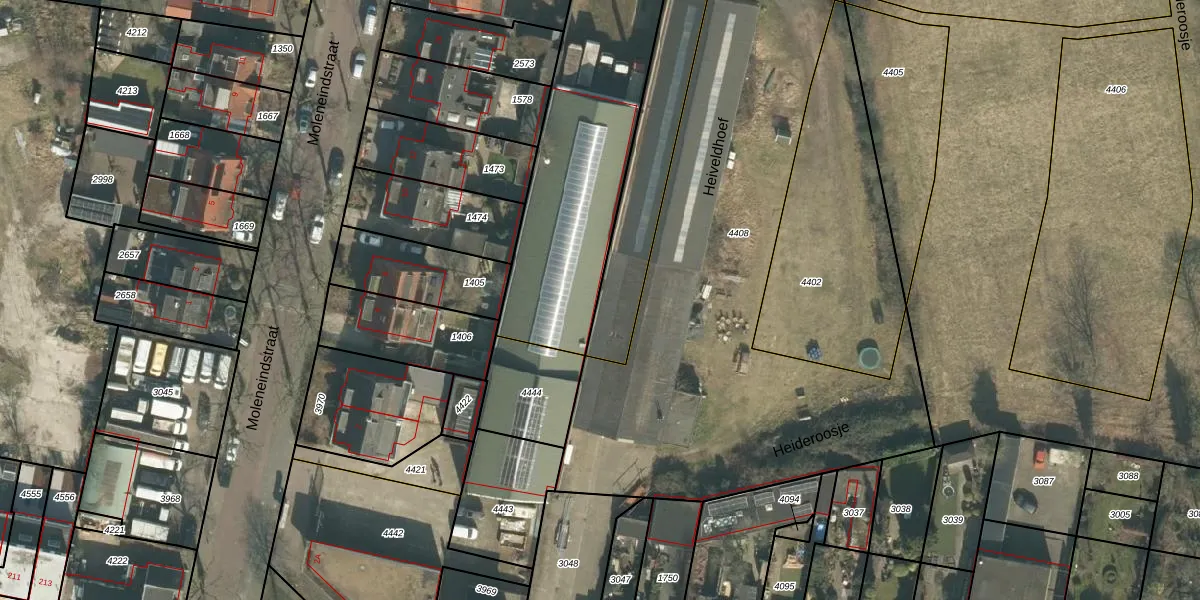 Het perceel waarop Heiveldhoef 13 staat heeft een oppervlakte van 533 m². Dit is een groot perceel. De perceeloppervlakte wordt geregistreerd door het Kadaster. Gedetailleerde informatie over de maten van dit perceel kunt u vinden in het rapport Kadastrale kaart met maatvoering van Heiveldhoef 13.