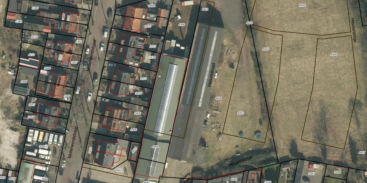 Het perceel waarop Heiveldhoef 19 staat heeft een oppervlakte van 533 m². Dit is een groot perceel. De perceeloppervlakte wordt geregistreerd door het Kadaster. Gedetailleerde informatie over de maten van dit perceel kunt u vinden in het rapport Kadastrale kaart met maatvoering van Heiveldhoef 19.