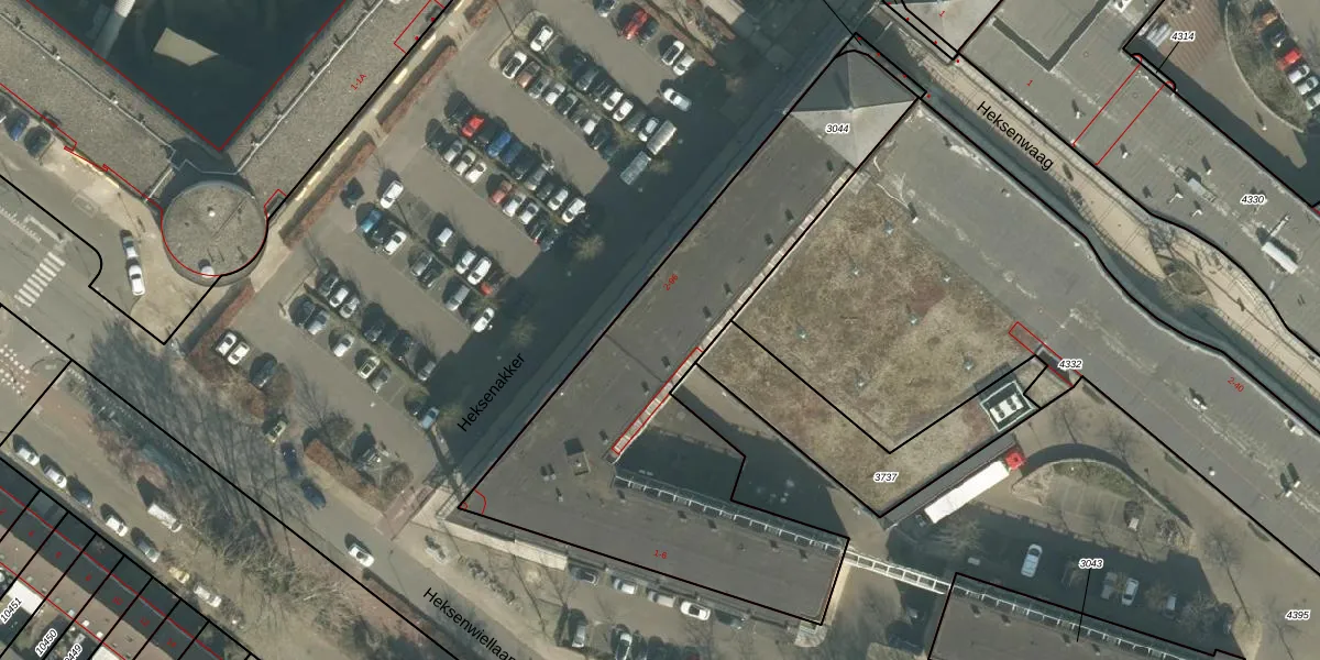 Heksenakker 32 is gelegen op kadastraal perceel BDA00I3044. Deze kadastrale aanduiding is uniek en wordt gebruikt door het Kadaster om eigendomsrechten en andere zakelijke rechten vast te leggen. Het perceel maakt onderdeel uit van de kadastrale gemeente Breda.