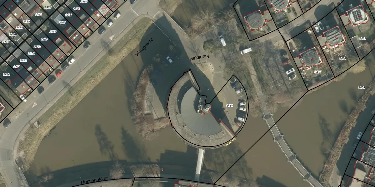 Heksenrij 19 is gelegen op kadastraal perceel BDA00I3454. Deze kadastrale aanduiding is uniek en wordt gebruikt door het Kadaster om eigendomsrechten en andere zakelijke rechten vast te leggen. Het perceel maakt onderdeel uit van de kadastrale gemeente Breda.
