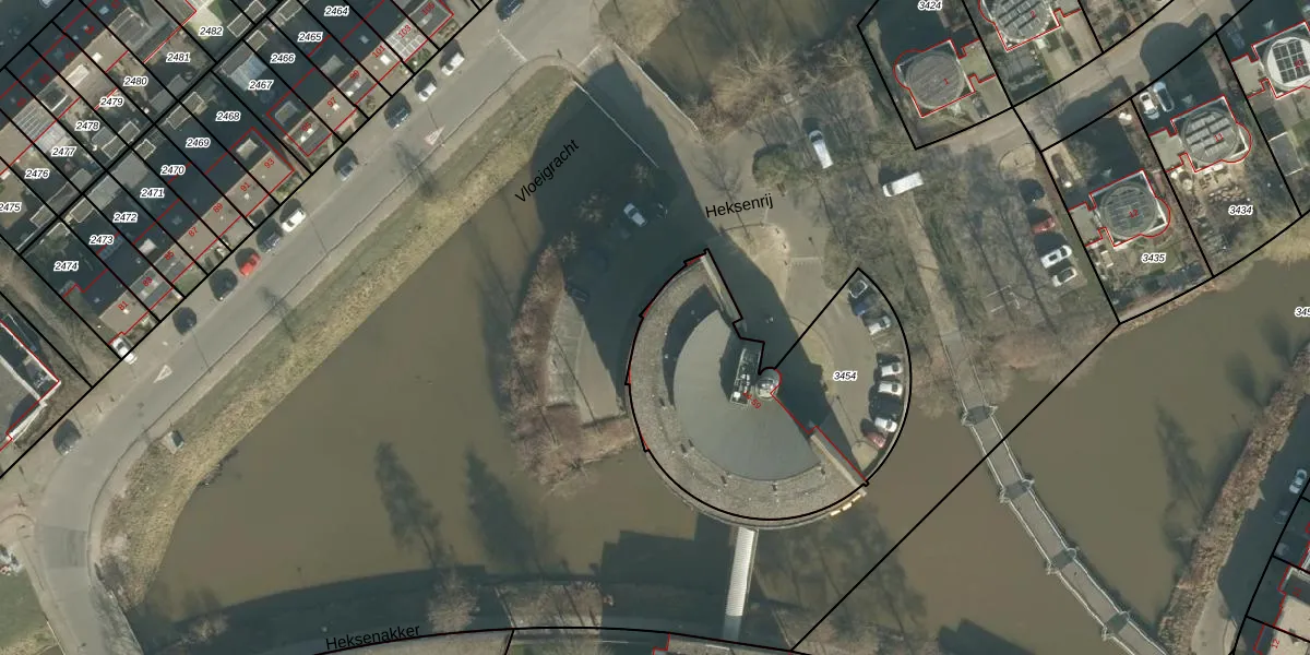 Heksenrij 32 is gelegen op kadastraal perceel BDA00I3454. Deze kadastrale aanduiding is uniek en wordt gebruikt door het Kadaster om eigendomsrechten en andere zakelijke rechten vast te leggen. Het perceel maakt onderdeel uit van de kadastrale gemeente Breda.
