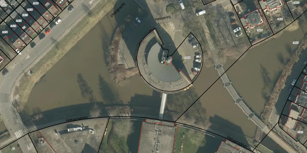 Heksenrij 57 is gelegen op kadastraal perceel BDA00I3454. Deze kadastrale aanduiding is uniek en wordt gebruikt door het Kadaster om eigendomsrechten en andere zakelijke rechten vast te leggen. Het perceel maakt onderdeel uit van de kadastrale gemeente Breda.