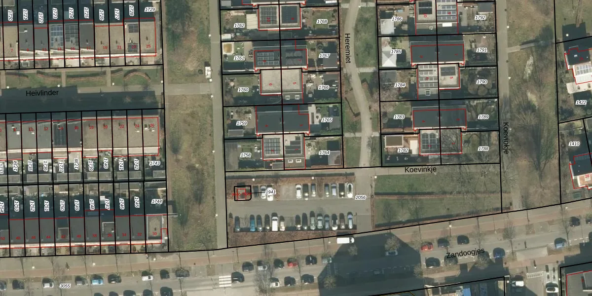 Gebruik de zoekbalk of klik op een perceel voor informatie over de adressen binnen dit perceel.