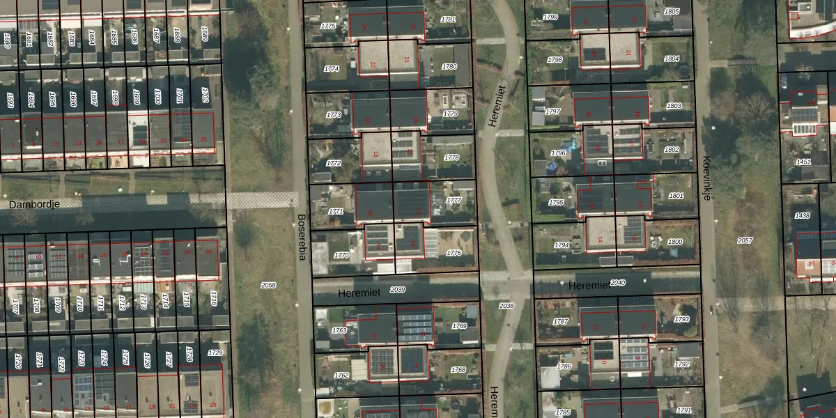Het perceel waarop Heremiet 15 staat heeft een oppervlakte van 213 m². Dit is een middelgroot perceel. De perceeloppervlakte wordt geregistreerd door het Kadaster. Gedetailleerde informatie over de maten van dit perceel kunt u vinden in het rapport Kadastrale kaart met maatvoering van Heremiet 15.
