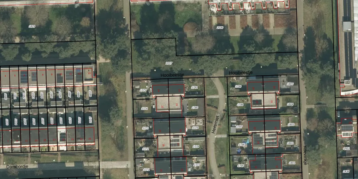 Het perceel waarop Heremiet 23 staat heeft een oppervlakte van 214 m². Dit is een middelgroot perceel. De perceeloppervlakte wordt geregistreerd door het Kadaster. Gedetailleerde informatie over de maten van dit perceel kunt u vinden in het rapport Kadastrale kaart met maatvoering van Heremiet 23.