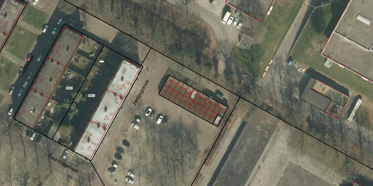 Het perceel waarop Hertzogstraat 58 staat heeft een oppervlakte van 413 m². Dit is een groot perceel. De perceeloppervlakte wordt geregistreerd door het Kadaster. Gedetailleerde informatie over de maten van dit perceel kunt u vinden in het rapport Kadastrale kaart met maatvoering van Hertzogstraat 58.