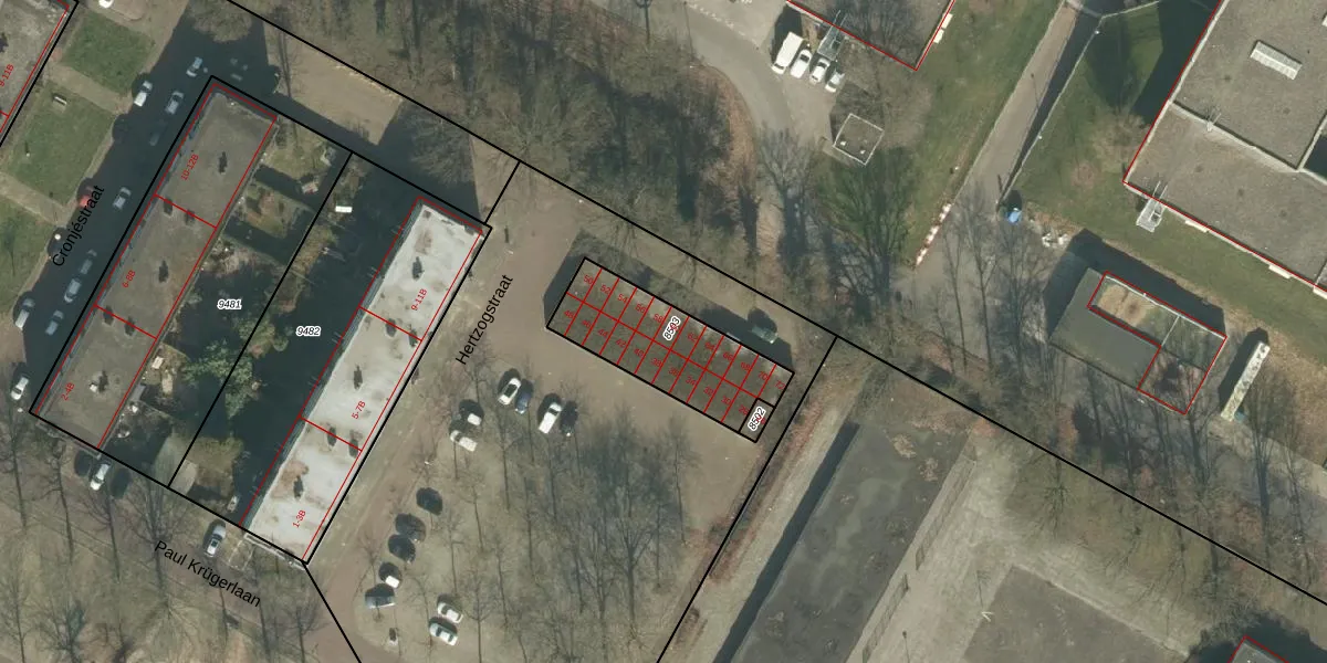 Het perceel waarop Hertzogstraat 60 staat heeft een oppervlakte van 413 m². Dit is een groot perceel. De perceeloppervlakte wordt geregistreerd door het Kadaster. Gedetailleerde informatie over de maten van dit perceel kunt u vinden in het rapport Kadastrale kaart met maatvoering van Hertzogstraat 60.