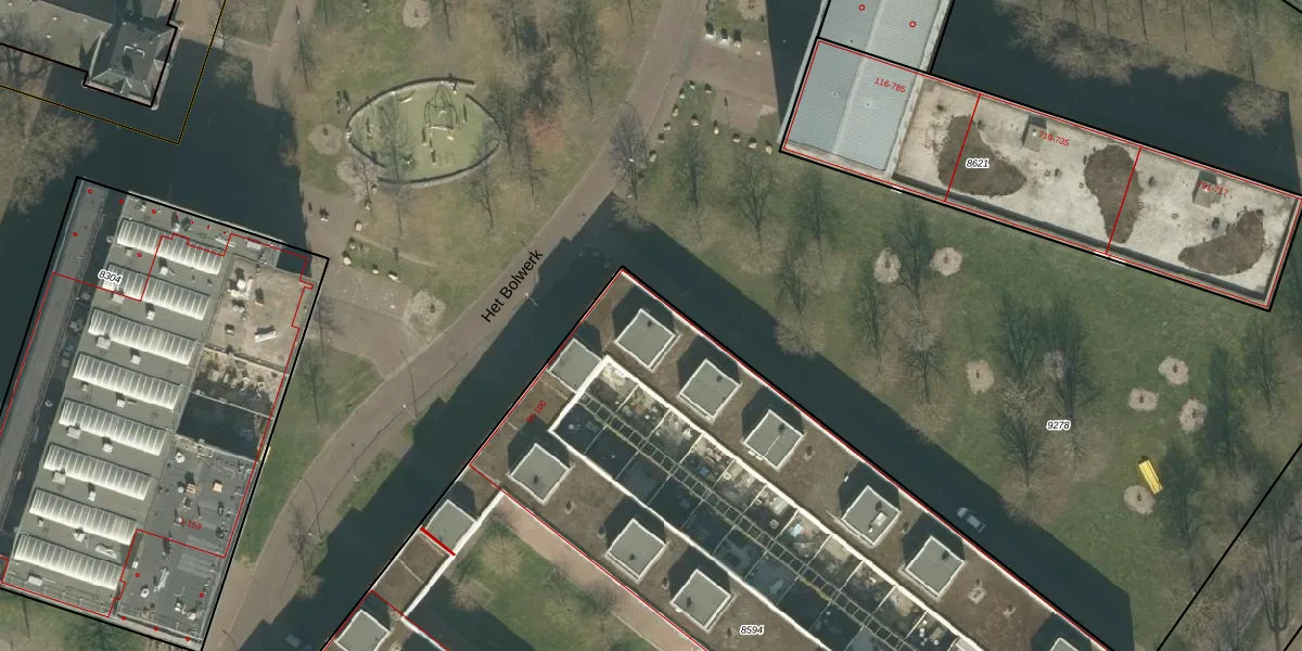 Het perceel waarop Het Bolwerk 72 staat heeft een oppervlakte van 7706 m². Dit is een zeer groot perceel. De perceeloppervlakte wordt geregistreerd door het Kadaster. Gedetailleerde informatie over de maten van dit perceel kunt u vinden in het rapport Kadastrale kaart met maatvoering van Het Bolwerk 72.