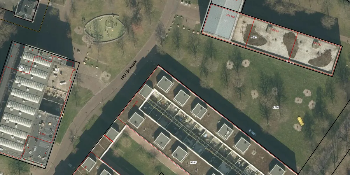Het perceel waarop Het Bolwerk 74 staat heeft een oppervlakte van 7706 m². Dit is een zeer groot perceel. De perceeloppervlakte wordt geregistreerd door het Kadaster. Gedetailleerde informatie over de maten van dit perceel kunt u vinden in het rapport Kadastrale kaart met maatvoering van Het Bolwerk 74.
