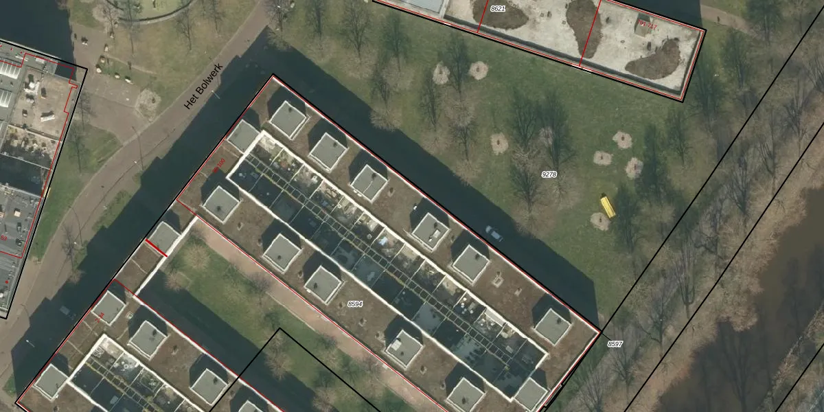 Het perceel waarop Het Bolwerk 84 staat heeft een oppervlakte van 7706 m². Dit is een zeer groot perceel. De perceeloppervlakte wordt geregistreerd door het Kadaster. Gedetailleerde informatie over de maten van dit perceel kunt u vinden in het rapport Kadastrale kaart met maatvoering van Het Bolwerk 84.