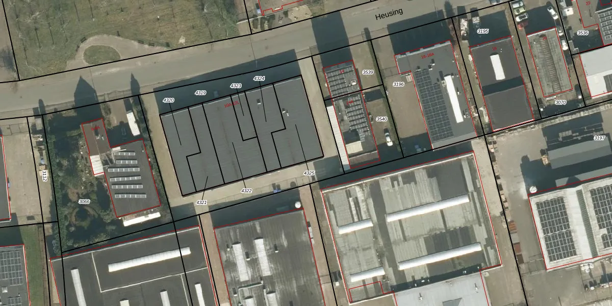 Het perceel waarop Heusing 12-A staat heeft een oppervlakte van 323 m². Dit is een groot perceel. De perceeloppervlakte wordt geregistreerd door het Kadaster. Gedetailleerde informatie over de maten van dit perceel kunt u vinden in het rapport Kadastrale kaart met maatvoering van Heusing 12-A.