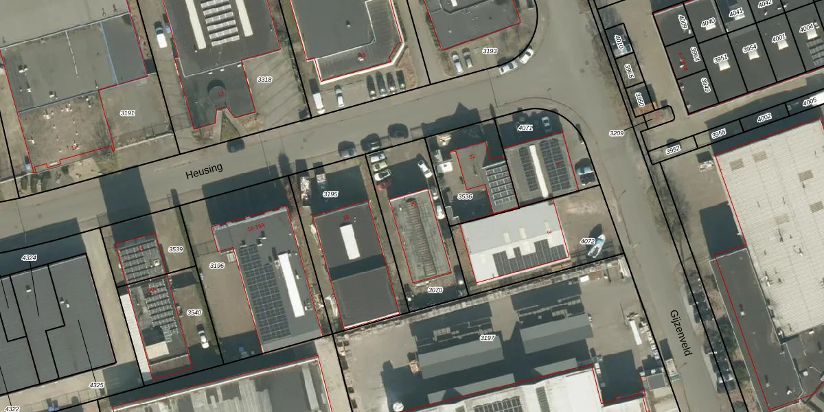 Het perceel waarop Heusing 20 staat heeft een oppervlakte van 596 m². Dit is een groot perceel. De perceeloppervlakte wordt geregistreerd door het Kadaster. Gedetailleerde informatie over de maten van dit perceel kunt u vinden in het rapport Kadastrale kaart met maatvoering van Heusing 20.