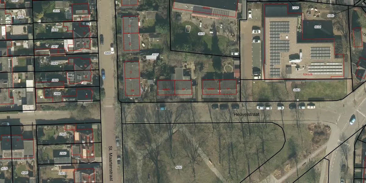 Heuvelstraat 56 is gelegen op kadastraal perceel PCH00I3377. Deze kadastrale aanduiding is uniek en wordt gebruikt door het Kadaster om eigendomsrechten en andere zakelijke rechten vast te leggen. Het perceel maakt onderdeel uit van de kadastrale gemeente Princenhage.
