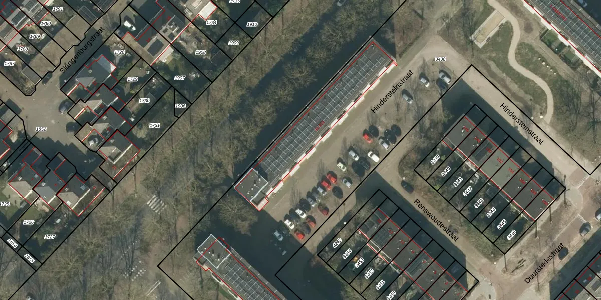 Het perceel waarop Hindersteinstraat 107 staat heeft een oppervlakte van 1,2 ha. Dit is een zeer groot perceel. De perceeloppervlakte wordt geregistreerd door het Kadaster. Gedetailleerde informatie over de maten van dit perceel kunt u vinden in het rapport Kadastrale kaart met maatvoering van Hindersteinstraat 107.