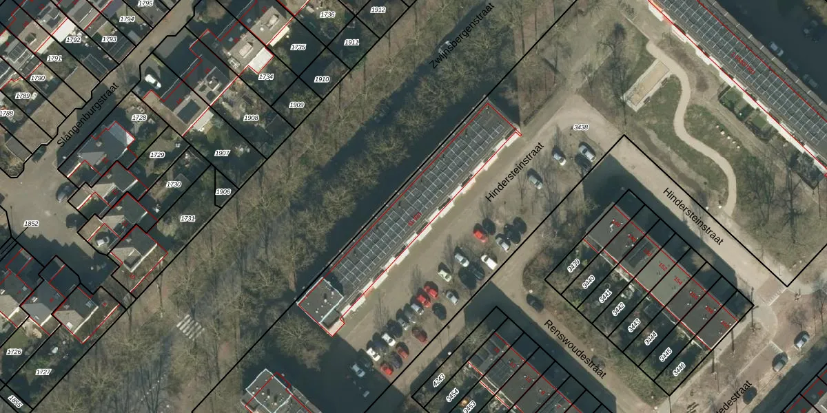 Het perceel waarop Hindersteinstraat 125 staat heeft een oppervlakte van 1,2 ha. Dit is een zeer groot perceel. De perceeloppervlakte wordt geregistreerd door het Kadaster. Gedetailleerde informatie over de maten van dit perceel kunt u vinden in het rapport Kadastrale kaart met maatvoering van Hindersteinstraat 125.