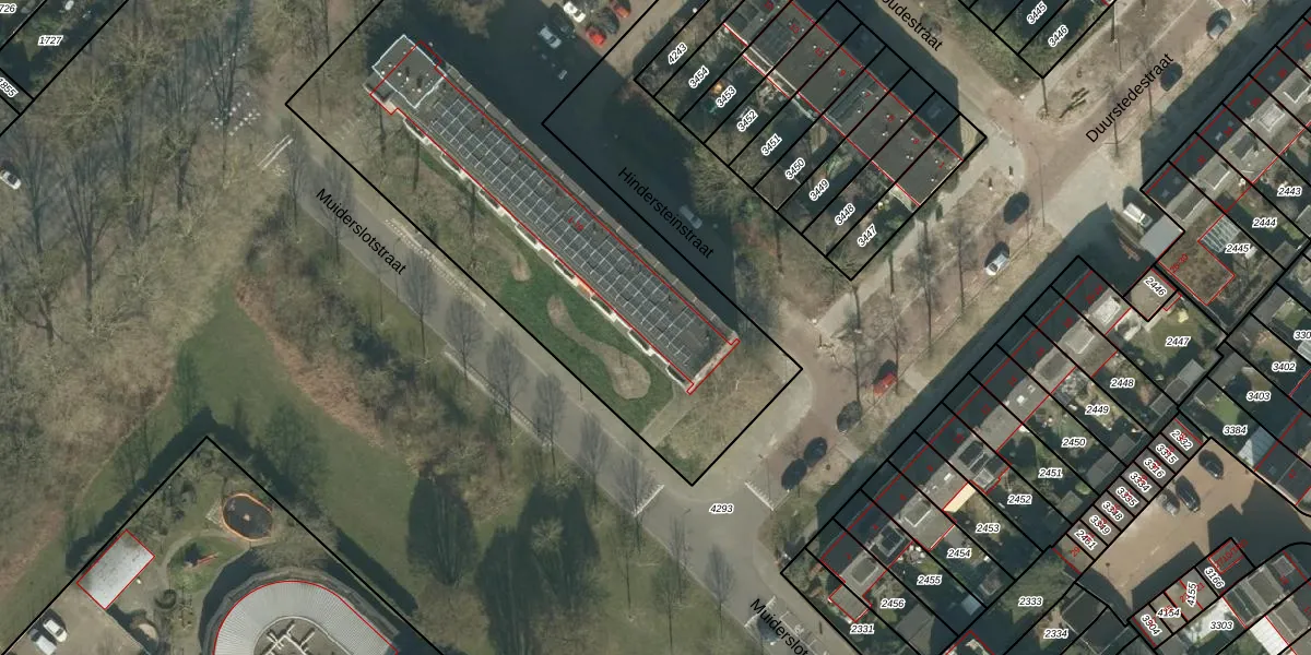 Het perceel waarop Hindersteinstraat 13 staat heeft een oppervlakte van 1,2 ha. Dit is een zeer groot perceel. De perceeloppervlakte wordt geregistreerd door het Kadaster. Gedetailleerde informatie over de maten van dit perceel kunt u vinden in het rapport Kadastrale kaart met maatvoering van Hindersteinstraat 13.
