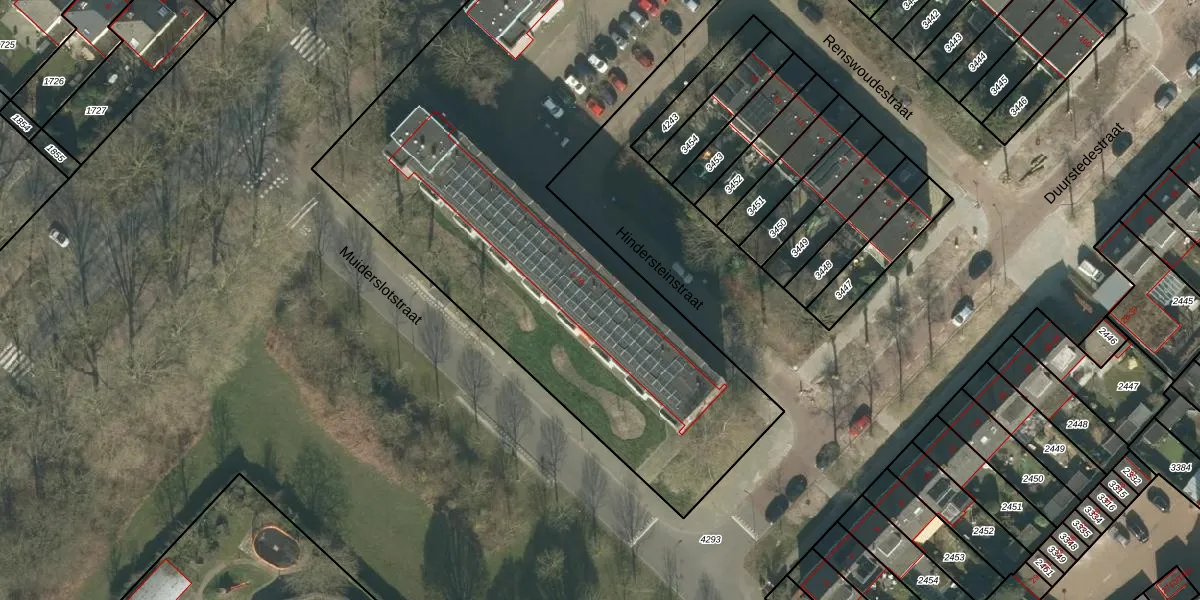 Het perceel waarop Hindersteinstraat 31 staat heeft een oppervlakte van 1,2 ha. Dit is een zeer groot perceel. De perceeloppervlakte wordt geregistreerd door het Kadaster. Gedetailleerde informatie over de maten van dit perceel kunt u vinden in het rapport Kadastrale kaart met maatvoering van Hindersteinstraat 31.