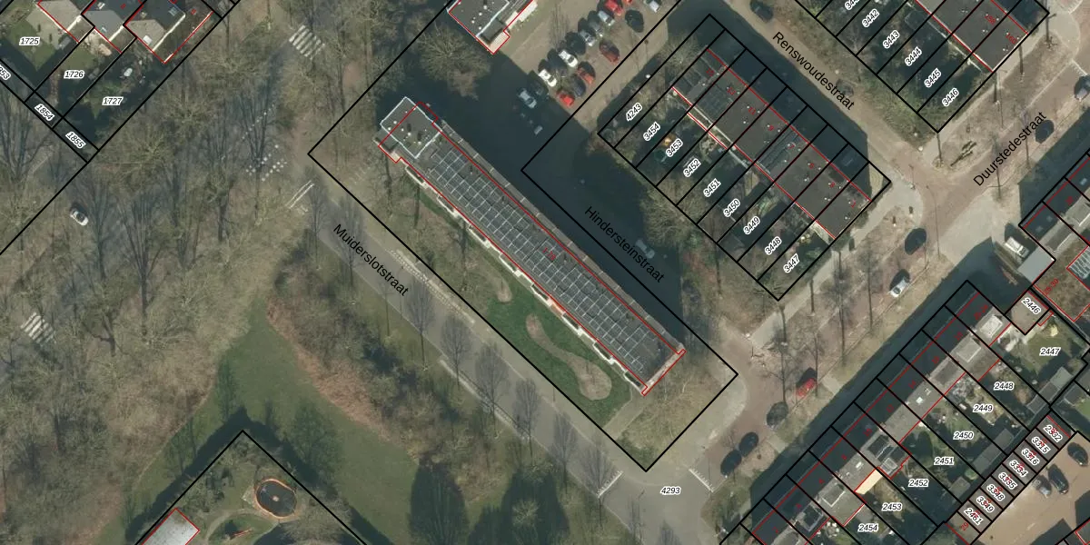Het perceel waarop Hindersteinstraat 37 staat heeft een oppervlakte van 1,2 ha. Dit is een zeer groot perceel. De perceeloppervlakte wordt geregistreerd door het Kadaster. Gedetailleerde informatie over de maten van dit perceel kunt u vinden in het rapport Kadastrale kaart met maatvoering van Hindersteinstraat 37.