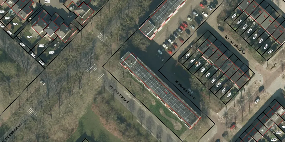 Het perceel waarop Hindersteinstraat 67 staat heeft een oppervlakte van 1,2 ha. Dit is een zeer groot perceel. De perceeloppervlakte wordt geregistreerd door het Kadaster. Gedetailleerde informatie over de maten van dit perceel kunt u vinden in het rapport Kadastrale kaart met maatvoering van Hindersteinstraat 67.