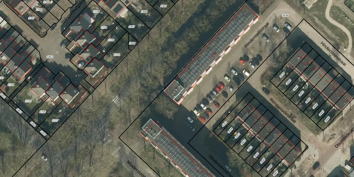 Het perceel waarop Hindersteinstraat 85 staat heeft een oppervlakte van 1,2 ha. Dit is een zeer groot perceel. De perceeloppervlakte wordt geregistreerd door het Kadaster. Gedetailleerde informatie over de maten van dit perceel kunt u vinden in het rapport Kadastrale kaart met maatvoering van Hindersteinstraat 85.