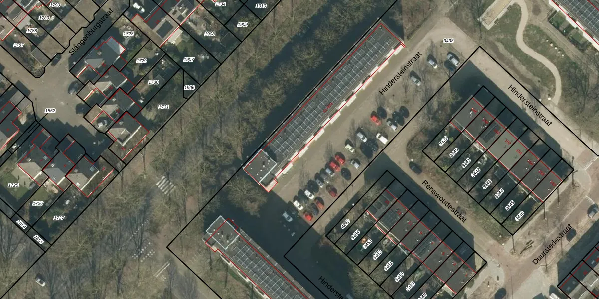 Het perceel waarop Hindersteinstraat 906 staat heeft een oppervlakte van 1,2 ha. Dit is een zeer groot perceel. De perceeloppervlakte wordt geregistreerd door het Kadaster. Gedetailleerde informatie over de maten van dit perceel kunt u vinden in het rapport Kadastrale kaart met maatvoering van Hindersteinstraat 906.