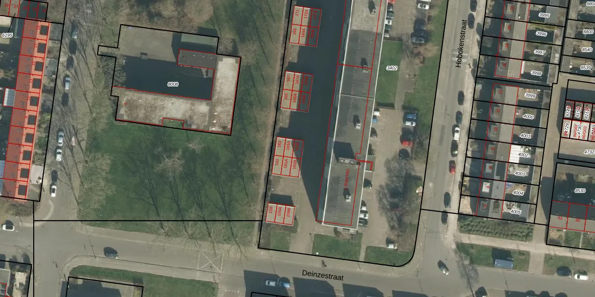 Hobokenstraat 163-B is gelegen op kadastraal perceel BDA00G3402. Deze kadastrale aanduiding is uniek en wordt gebruikt door het Kadaster om eigendomsrechten en andere zakelijke rechten vast te leggen. Het perceel maakt onderdeel uit van de kadastrale gemeente Breda.
