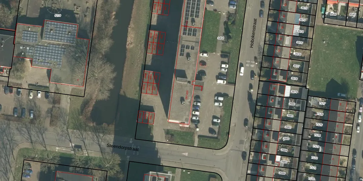 Het perceel waarop Hobokenstraat 299 staat heeft een oppervlakte van 6580 m². Dit is een zeer groot perceel. De perceeloppervlakte wordt geregistreerd door het Kadaster. Gedetailleerde informatie over de maten van dit perceel kunt u vinden in het rapport Kadastrale kaart met maatvoering van Hobokenstraat 299.