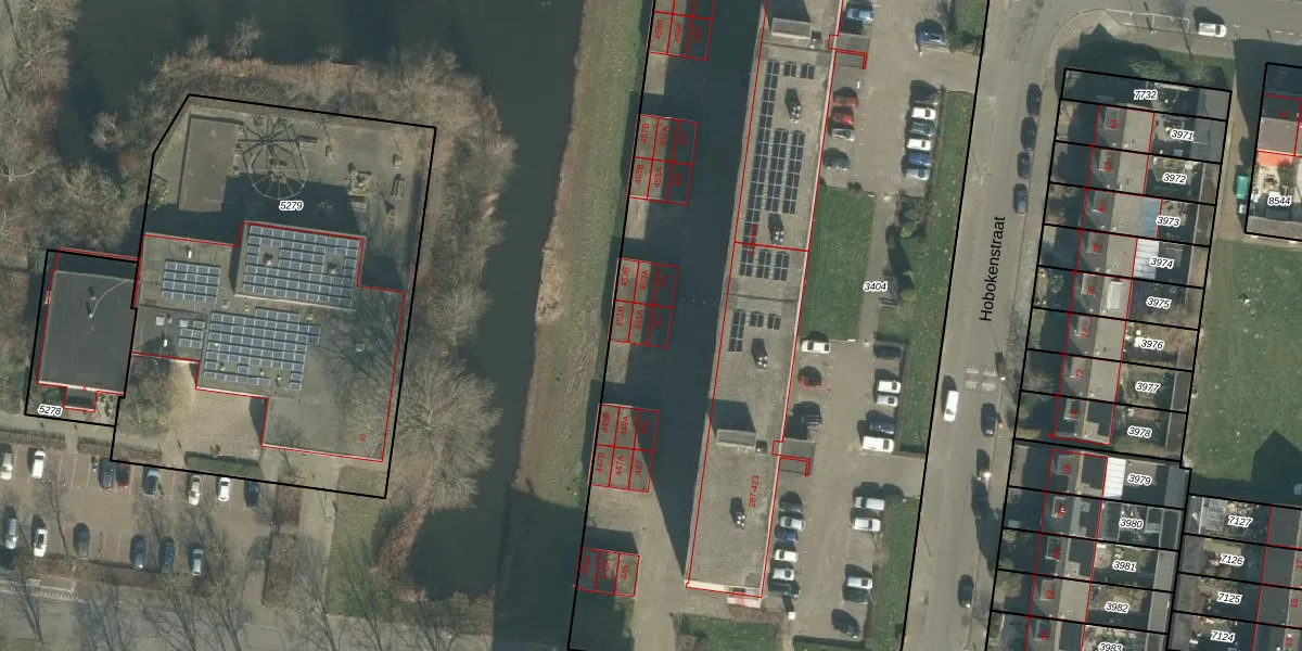 Het perceel waarop Hobokenstraat 451 staat heeft een oppervlakte van 6580 m². Dit is een zeer groot perceel. De perceeloppervlakte wordt geregistreerd door het Kadaster. Gedetailleerde informatie over de maten van dit perceel kunt u vinden in het rapport Kadastrale kaart met maatvoering van Hobokenstraat 451.