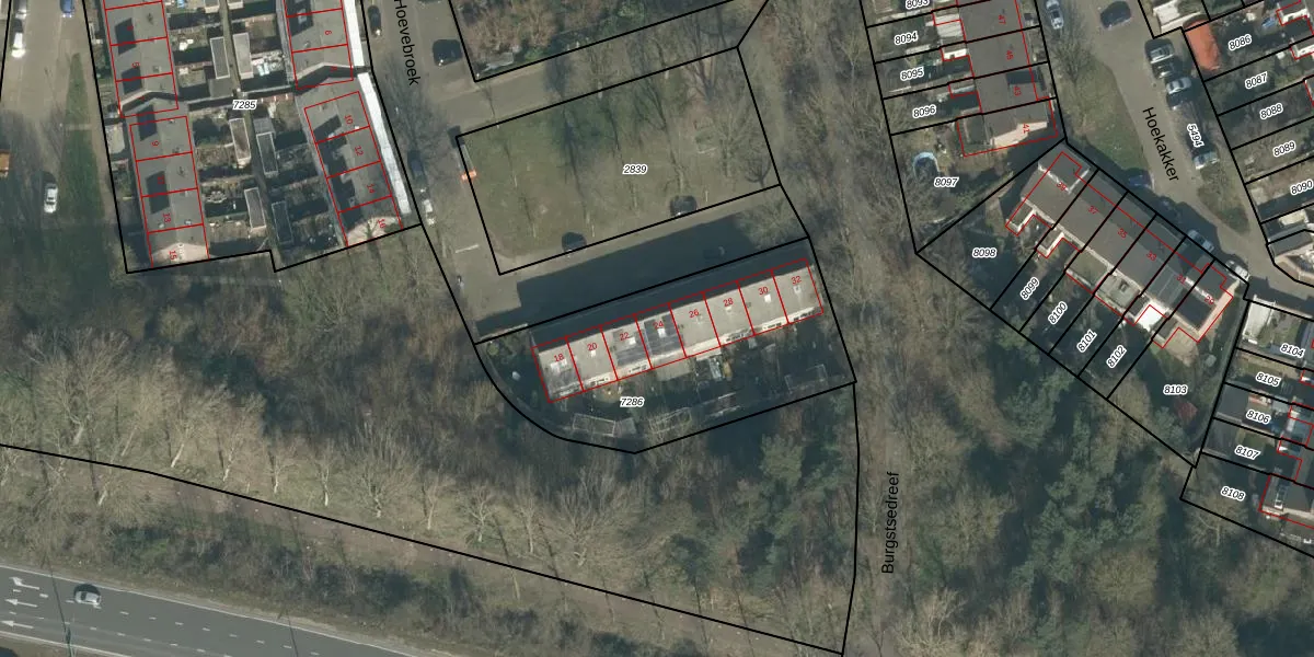 Hoevebroek 24 is gelegen op kadastraal perceel BDA00H7286. Deze kadastrale aanduiding is uniek en wordt gebruikt door het Kadaster om eigendomsrechten en andere zakelijke rechten vast te leggen. Het perceel maakt onderdeel uit van de kadastrale gemeente Breda.