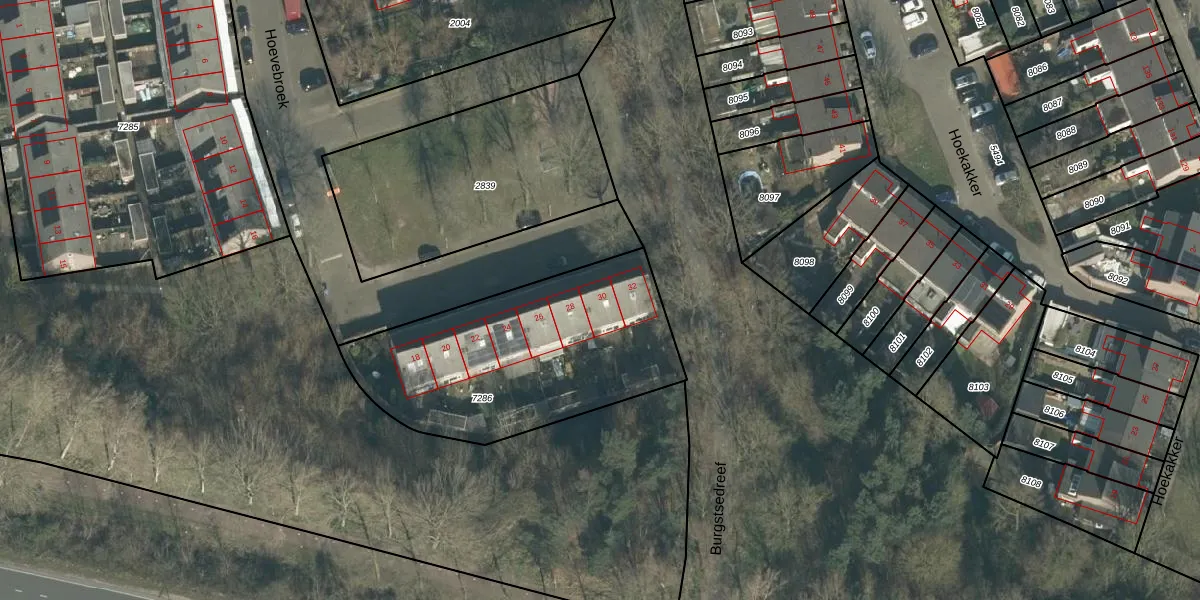 Hoevebroek 30 is gelegen op kadastraal perceel BDA00H7286. Deze kadastrale aanduiding is uniek en wordt gebruikt door het Kadaster om eigendomsrechten en andere zakelijke rechten vast te leggen. Het perceel maakt onderdeel uit van de kadastrale gemeente Breda.