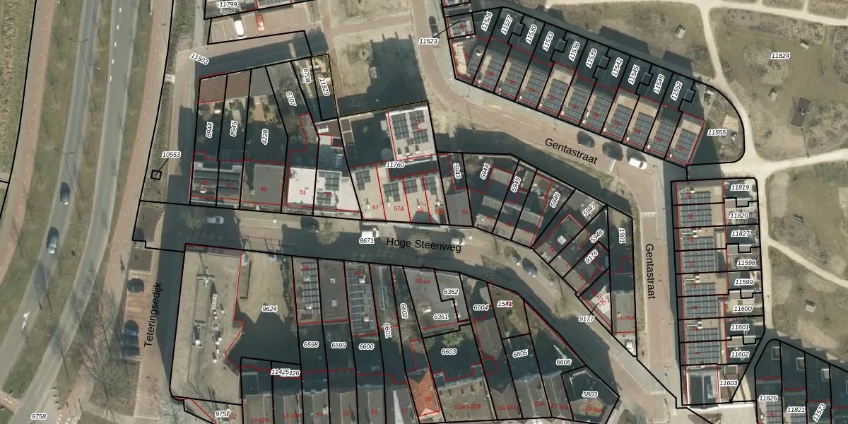 Het perceel waarop Hoge Steenweg 59 staat heeft een oppervlakte van 564 m². Dit is een groot perceel. De perceeloppervlakte wordt geregistreerd door het Kadaster. Gedetailleerde informatie over de maten van dit perceel kunt u vinden in het rapport Kadastrale kaart met maatvoering van Hoge Steenweg 59.