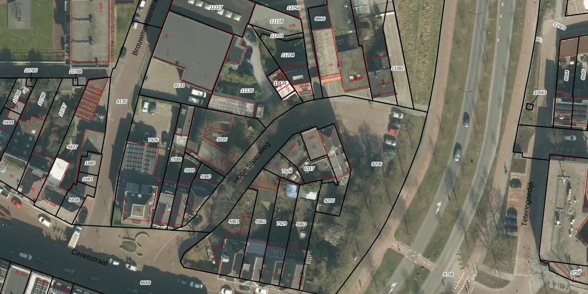 Hoge Steenweg 8 is gelegen op kadastraal perceel BDA00D6317. Deze kadastrale aanduiding is uniek en wordt gebruikt door het Kadaster om eigendomsrechten en andere zakelijke rechten vast te leggen. Het perceel maakt onderdeel uit van de kadastrale gemeente Breda.