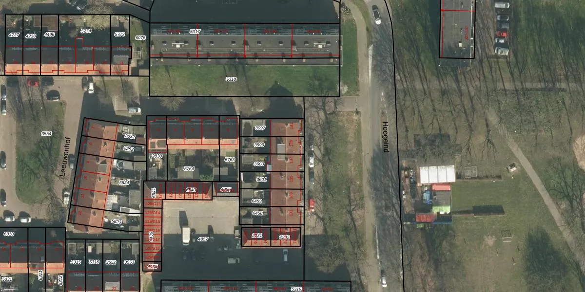 Gebruik de zoekbalk of klik op een perceel voor informatie over de adressen binnen dit perceel.