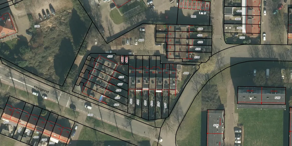 Het perceel waarop Hoogeind 36 staat heeft een oppervlakte van 203 m². Dit is een middelgroot perceel. De perceeloppervlakte wordt geregistreerd door het Kadaster. Gedetailleerde informatie over de maten van dit perceel kunt u vinden in het rapport Kadastrale kaart met maatvoering van Hoogeind 36.