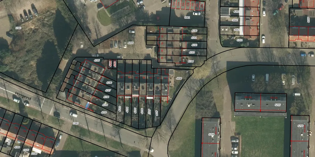 Het perceel waarop Hoogeind 42 staat heeft een oppervlakte van 171 m². Dit is een middelgroot perceel. De perceeloppervlakte wordt geregistreerd door het Kadaster. Gedetailleerde informatie over de maten van dit perceel kunt u vinden in het rapport Kadastrale kaart met maatvoering van Hoogeind 42.