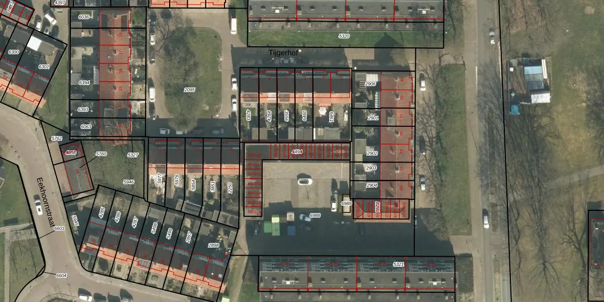 Het perceel waarop Hoogeind 65-G06 staat heeft een oppervlakte van 322 m². Dit is een groot perceel. De perceeloppervlakte wordt geregistreerd door het Kadaster. Gedetailleerde informatie over de maten van dit perceel kunt u vinden in het rapport Kadastrale kaart met maatvoering van Hoogeind 65-G06.