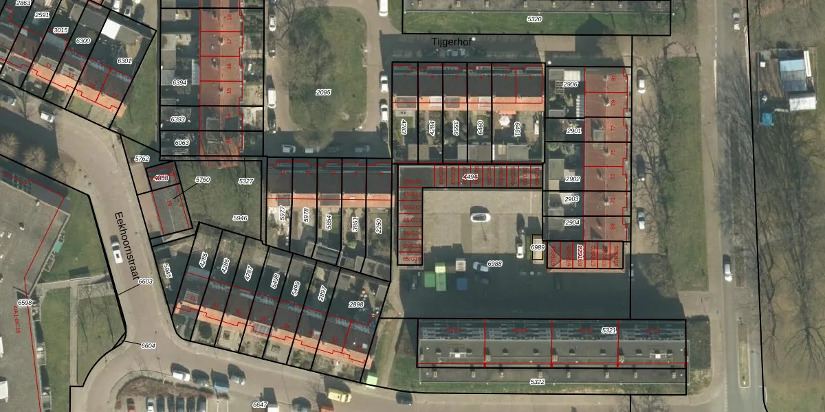 Het perceel waarop Hoogeind 65-G12 staat heeft een oppervlakte van 322 m². Dit is een groot perceel. De perceeloppervlakte wordt geregistreerd door het Kadaster. Gedetailleerde informatie over de maten van dit perceel kunt u vinden in het rapport Kadastrale kaart met maatvoering van Hoogeind 65-G12.
